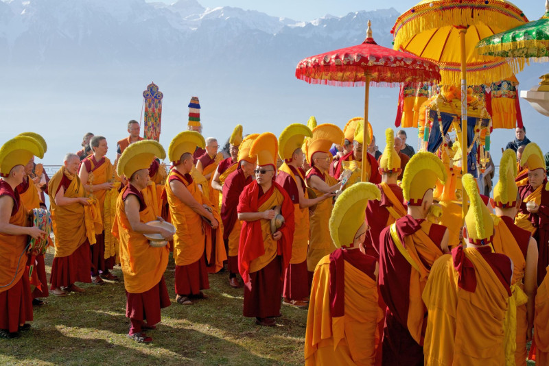 Een groep van acht monniken uit het boeddhistisch hoofdcentrum Rabten Choeling verzorgt onder leiding van Gonsar Rinpoché een reeks traditionele Tibetaanse rituelen, die gepaard gaan met muziek, kenmerkend voor de Tibetaanse boeddhistische kloostertraditie, met onder andere lange hoorns, cimbalen en rituele trommels.