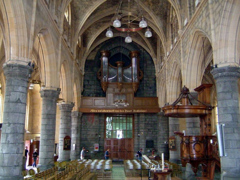 Marco Blaauw, trompettist bij Musikfabrik, speelt autonoom en begeleidt de gemeentezang muzikaal.